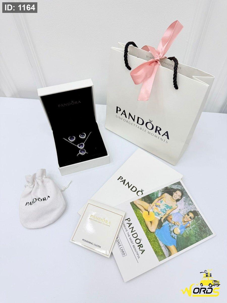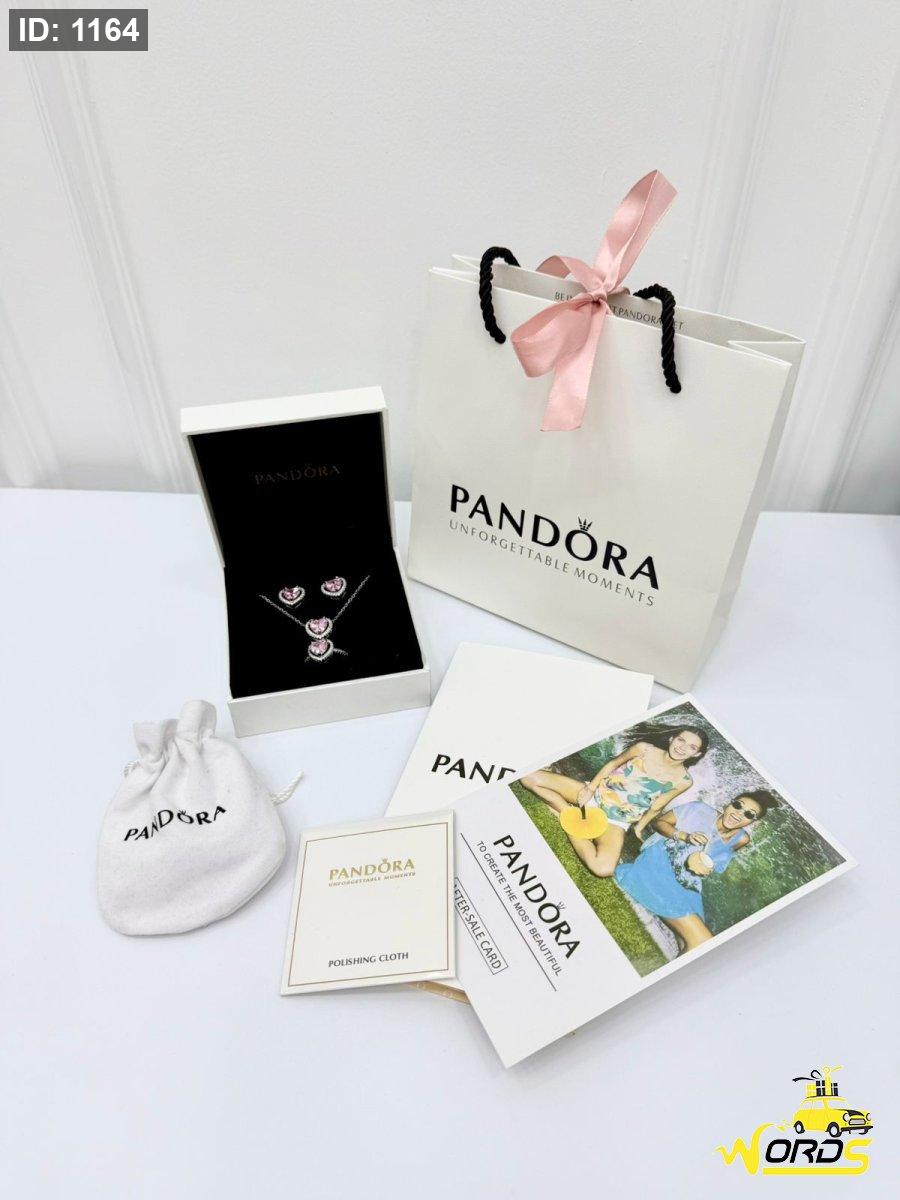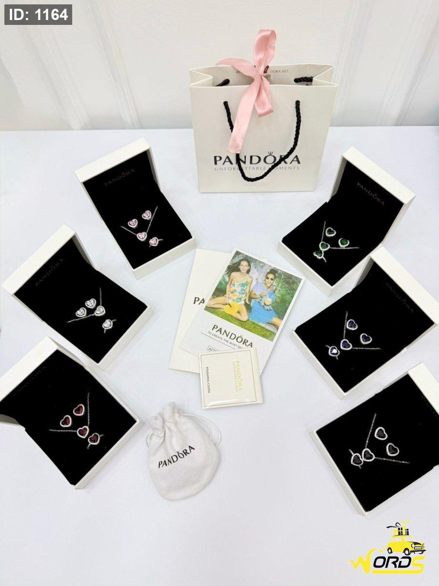 خاتم وحلق وسنسال بندورا ستينلس ستيل مكفول على اللون مع علبة وجميع الاوراق