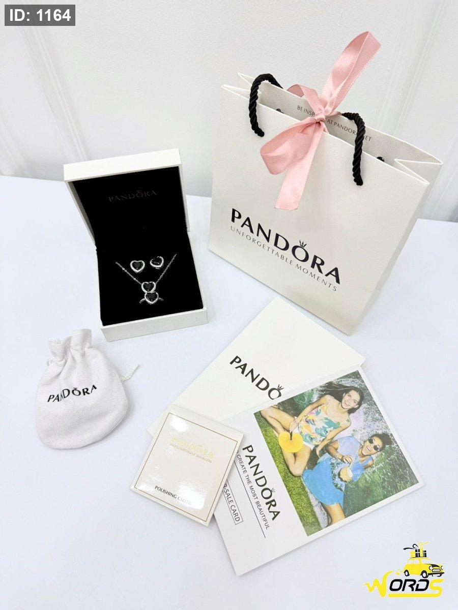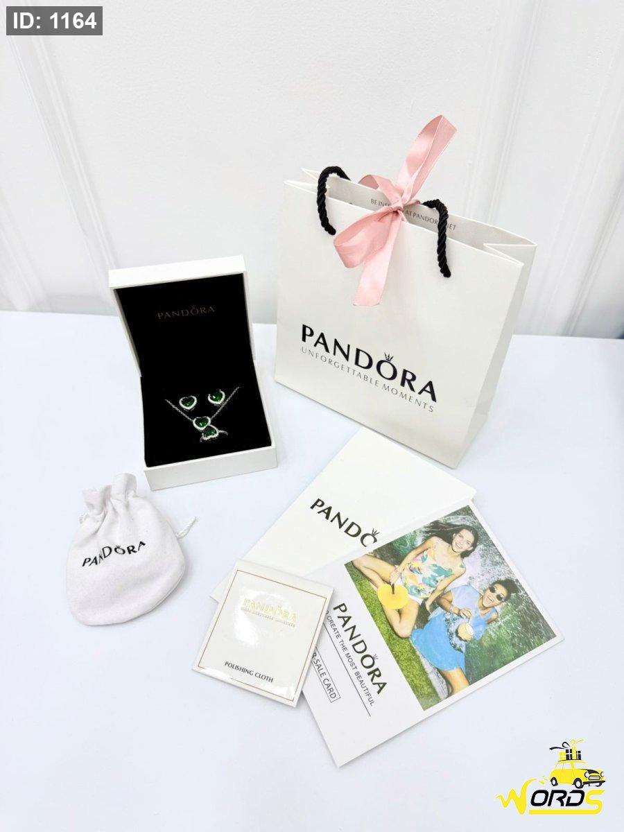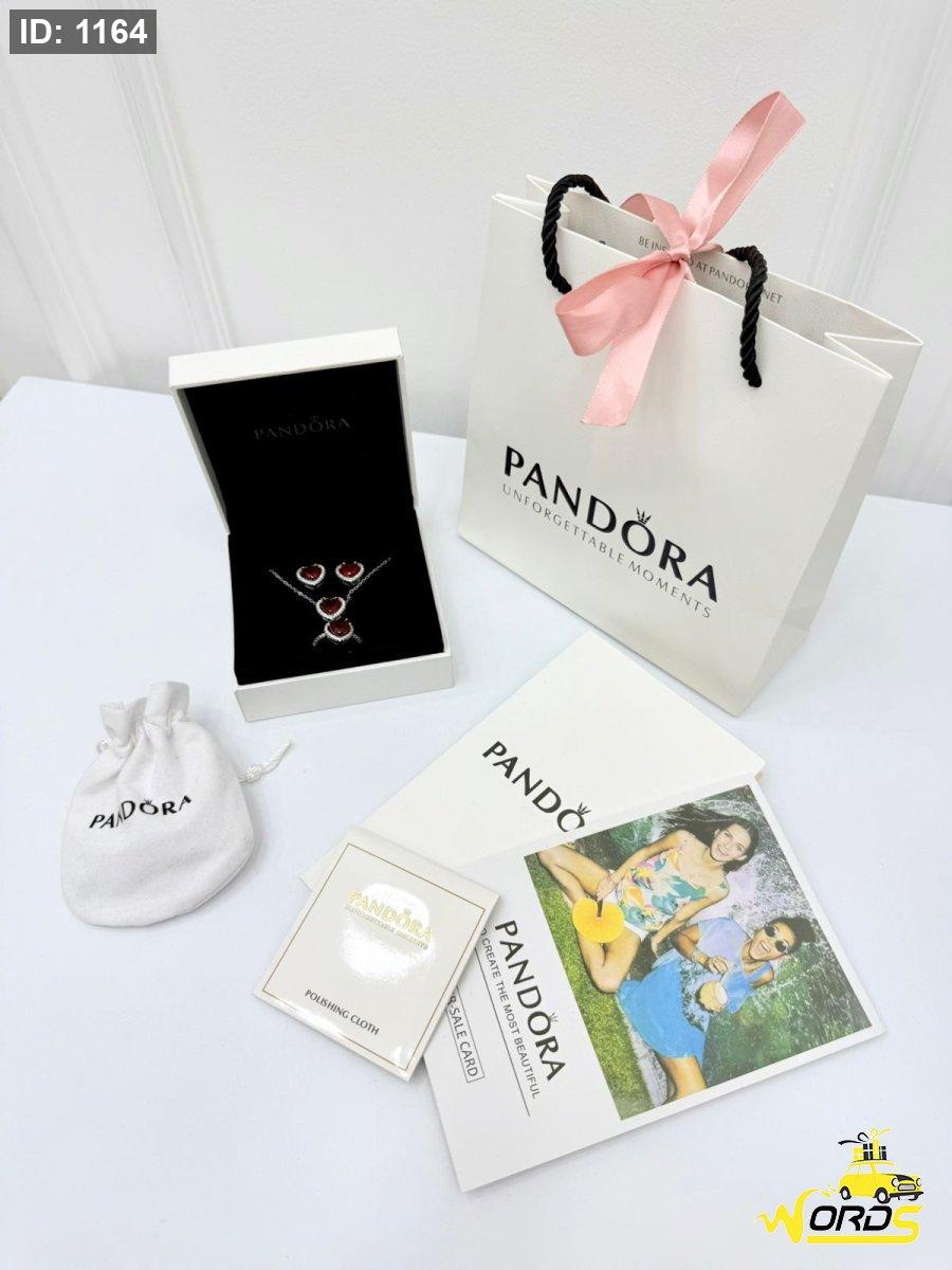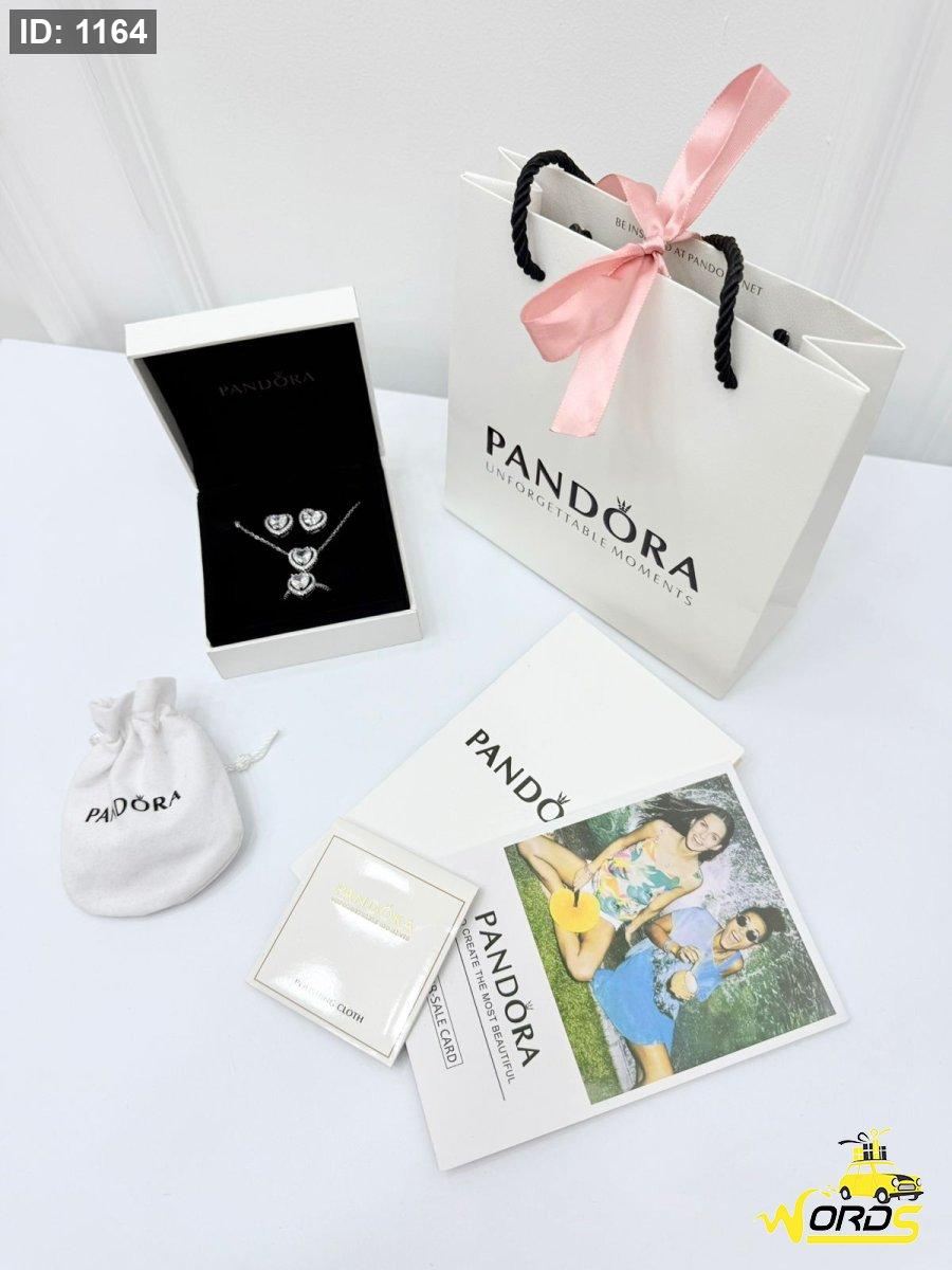 خاتم وحلق وسنسال بندورا ستينلس ستيل مكفول على اللون مع علبة وجميع الاوراق